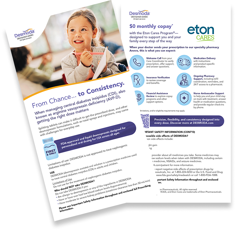 When your doctor prescribes DESMODA, you’re automatically enrolled in the Eton Cares Program®—designed to support you and your family every step of the way.